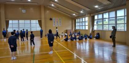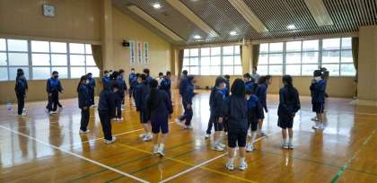 プレイホールでは、迅速な集合とあいさつの練習です。