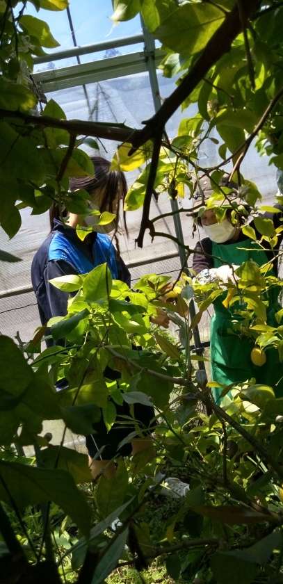 ハウスで成長したレモンを収穫しました。