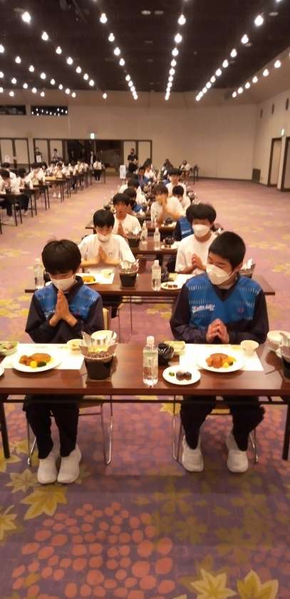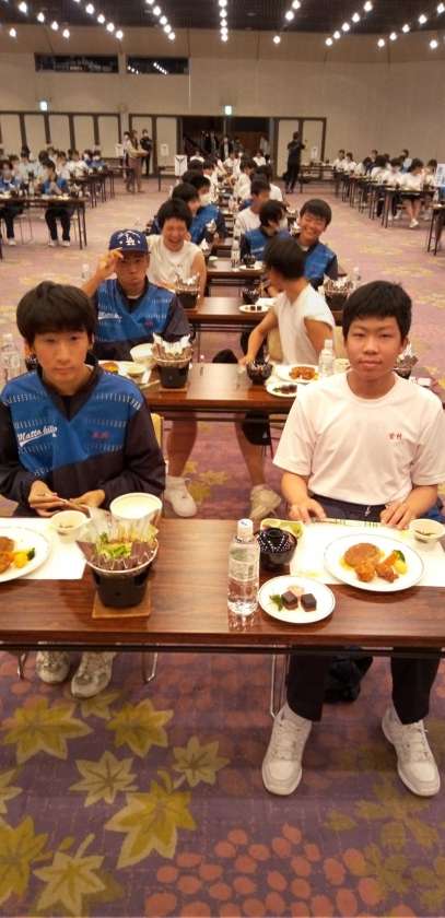メニューは、「瀬戸内の白身魚のお造り」「ハンバーグステーキ」「鳥の唐揚げ」「ローストビーフ」「お味噌汁」、ケーキのデザートです。