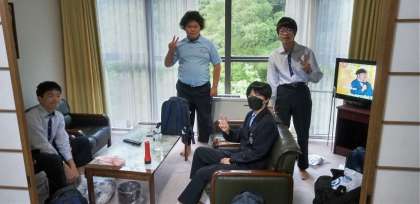 起床時刻前、早起き男子は早くも標準服に着替えています。