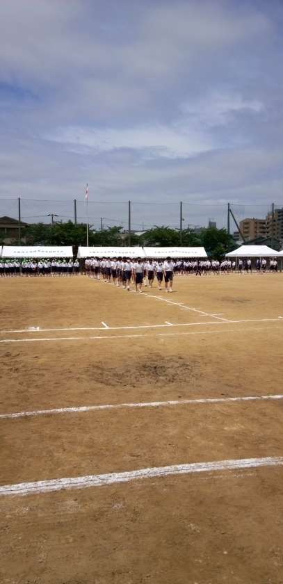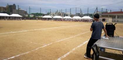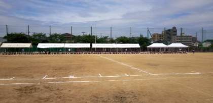 グラウンド整備やテントが用意され、体育大会の全体練習が始まりました。