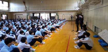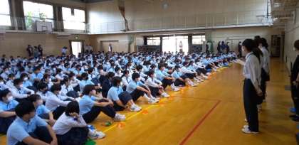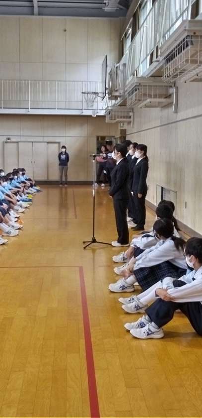 月曜日の朝、体育館で全校集会を行いました。