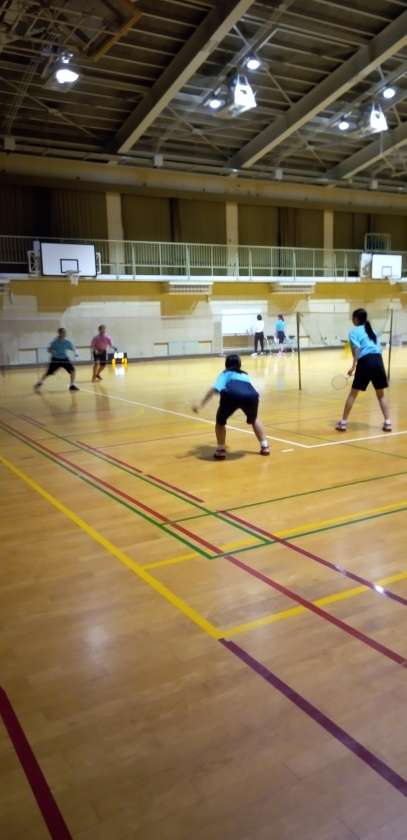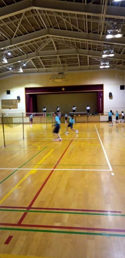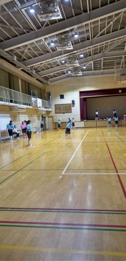 体育館では、バドミントン部が活動しています。