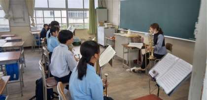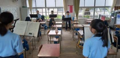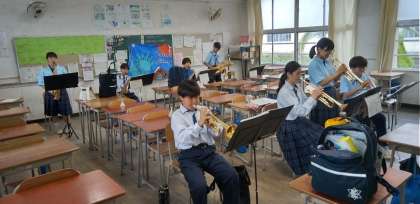 教室では、吹奏楽部が練習に励んでいます。