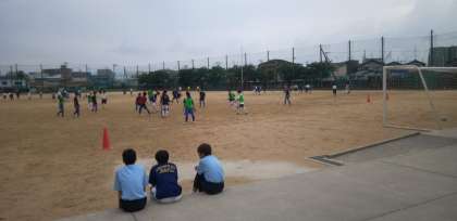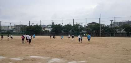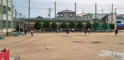 グラウンドでは、サッカー部、ラグビー部、ソフトボール部が練習しています。