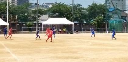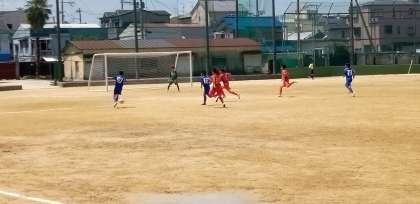 グラウンドでは、サッカー部が練習試合を行っています。