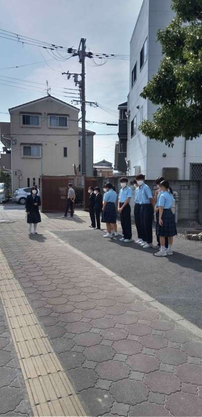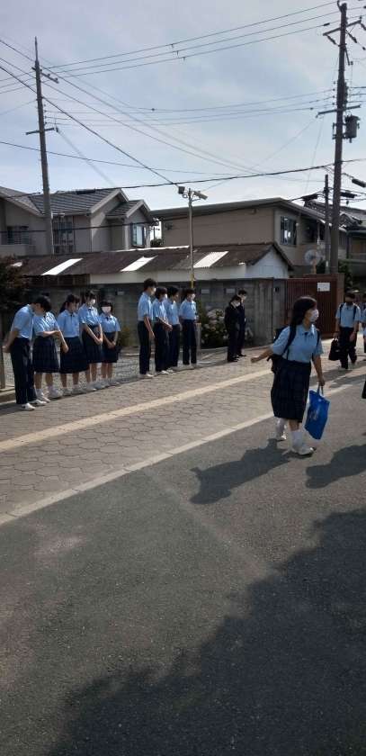 暑い中ですが、代表生徒たちが元気にあいさつを交わしています。