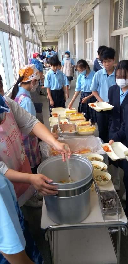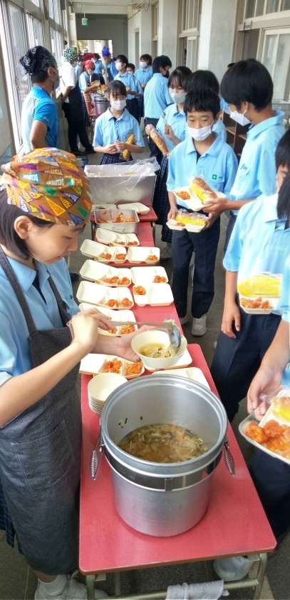 午前中の授業が終わって、給食の時間となりました。
