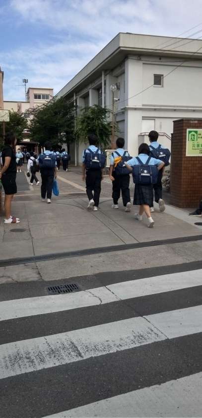 太陽がカンカン照りの中、生徒たちが元気に登校してきました。