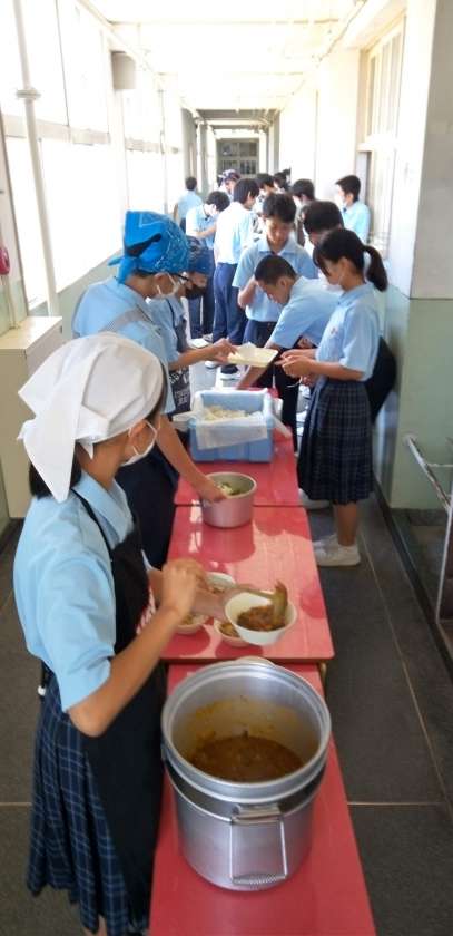 暑い暑い午前中の授業が終わって、給食の時間となりました。