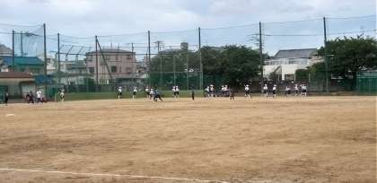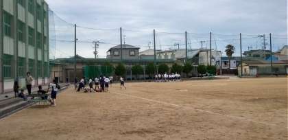 グラウンドでは、ソフトボール部の試合です。