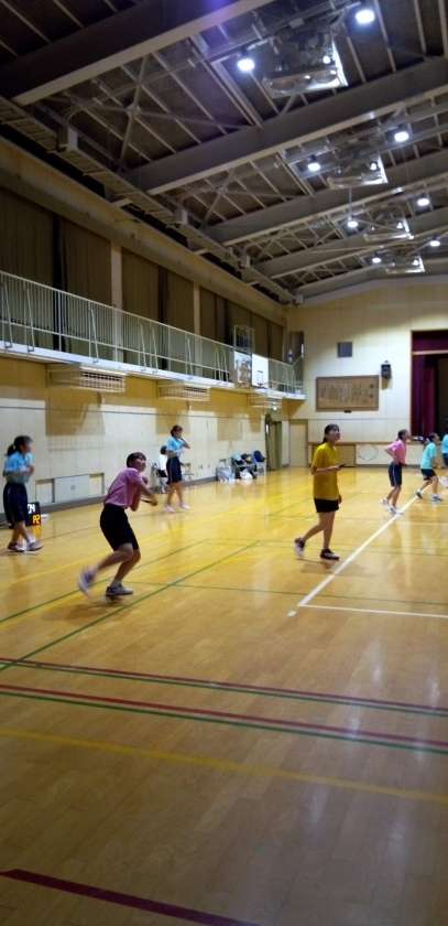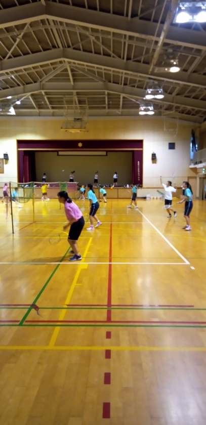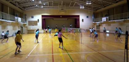 体育館では、バドミントン部が夏の選手権大会目指して頑張っています。