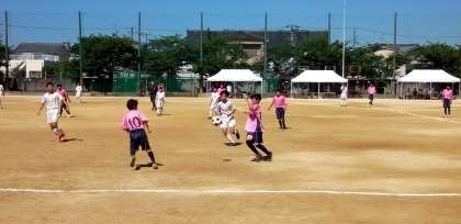 大変な猛暑の中、グラウンドではサッカーの大会が繰り広げられています。