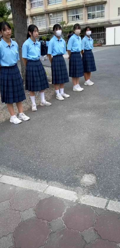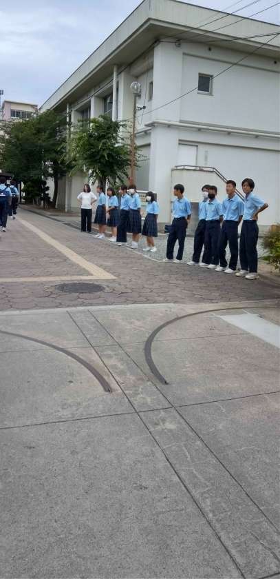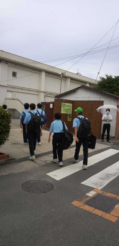 小雨も収まり、生徒たちが元気に登校しています。