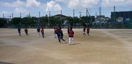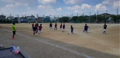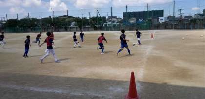 炎天下のグラウンドでは、サッカー部も汗を流しています。