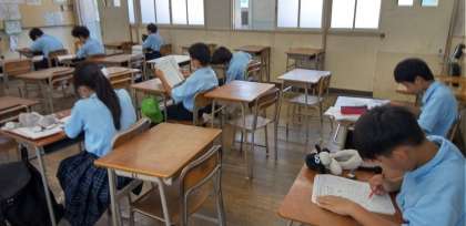 猛烈な暑さの学校ですが、涼しい教室で学習会が行われています。