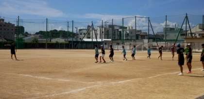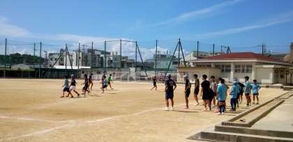 灼熱のグラウンドでは、ラグビー部が頑張っています。