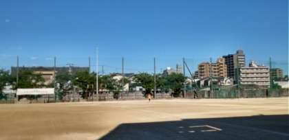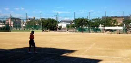 グラウンドでは、ソフトボール部の練習試合が行われるようです。