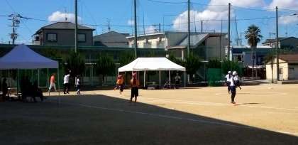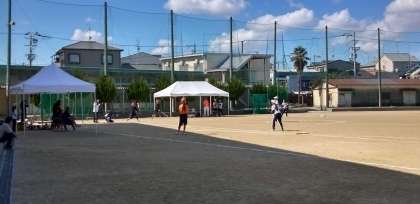 炎天下ですが、みんな帽子をかぶり、水分補給をしながら頑張っています。