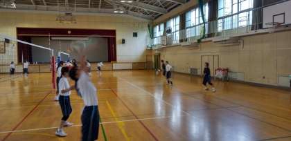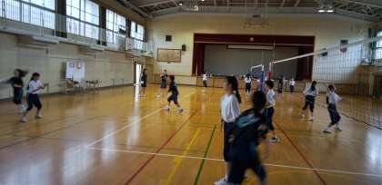 体育館では、昨日試合を終えた女子バレーボール部が練習しています。