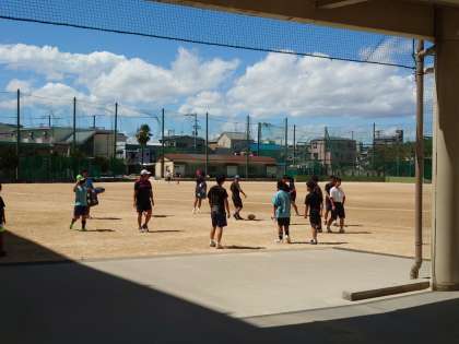グラウンドでは、野球部、ラグビー部、サッカー部が活動しています。