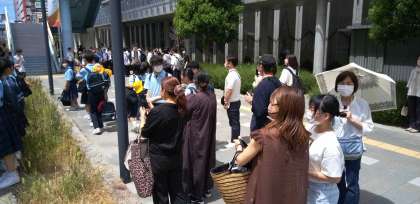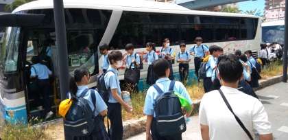 本日は、バスで学校と会場を移動です。