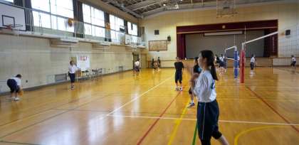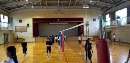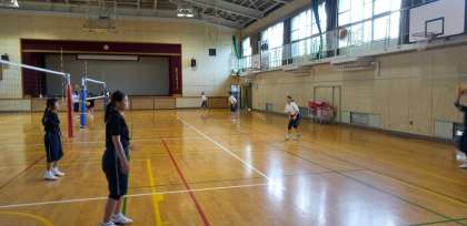 体育館では、女子バレーボール部が練習を行っています。