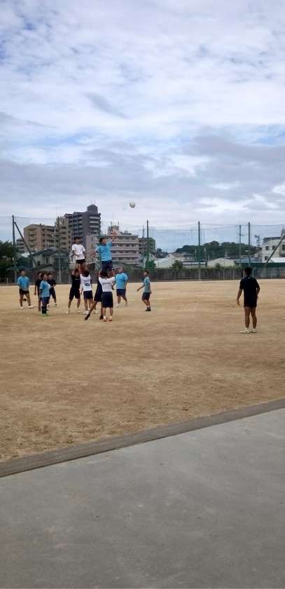ラインアウトの練習、ボールがまっすぐ入っています!