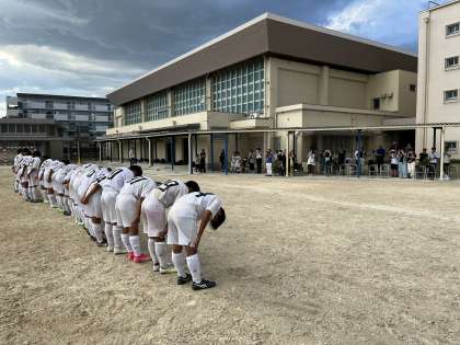 本日、美津島中学校で大阪市秋季大会1回戦が行われました。相手は美津島中学校です。負ければ3年生は引退の中、