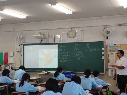1年社会の授業の様子です。古代中国の歴史について学習しています。