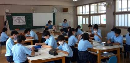 とても暑い被服室。扇風機と冷風扇で、涼をとりますが・・・。