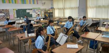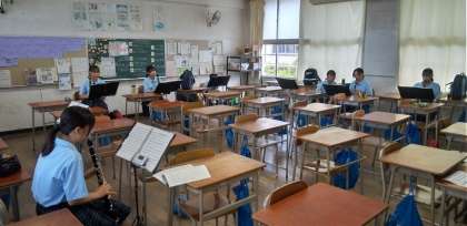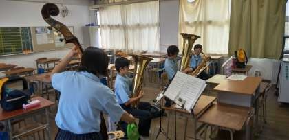 校舎では、吹奏楽部が練習しています。