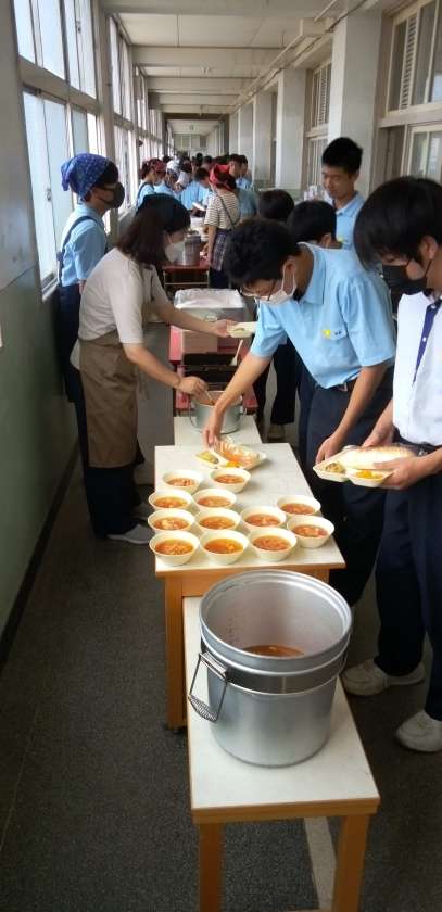 本日のメニューは、「豆乳マカロニグラタン」「野菜たっぷりトマトスープ」「缶詰めみかん」です。