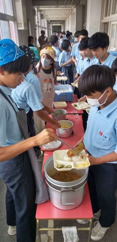 本日のメニューは、給食の横綱「カレーライス」「きゅうりのサラダ」「缶詰め洋梨」です。