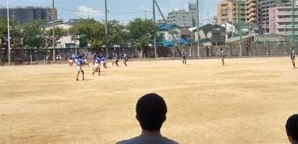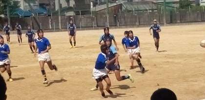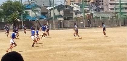 グラウンドでは、ラグビー部が試合を。