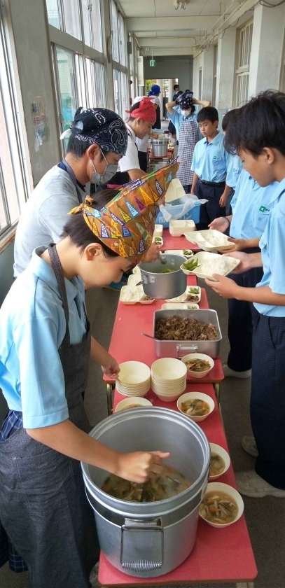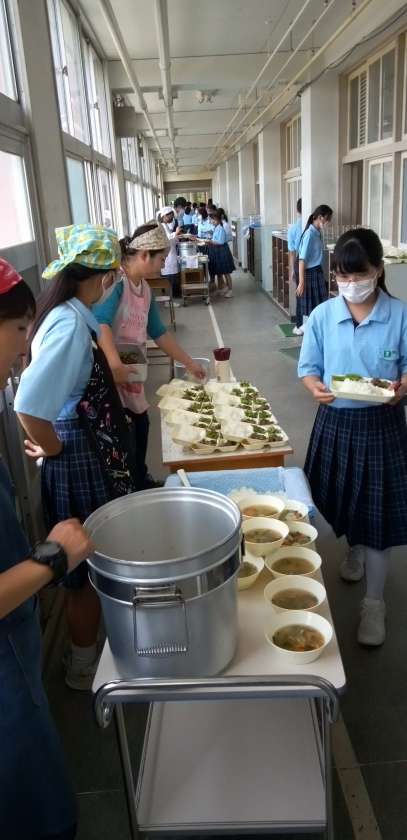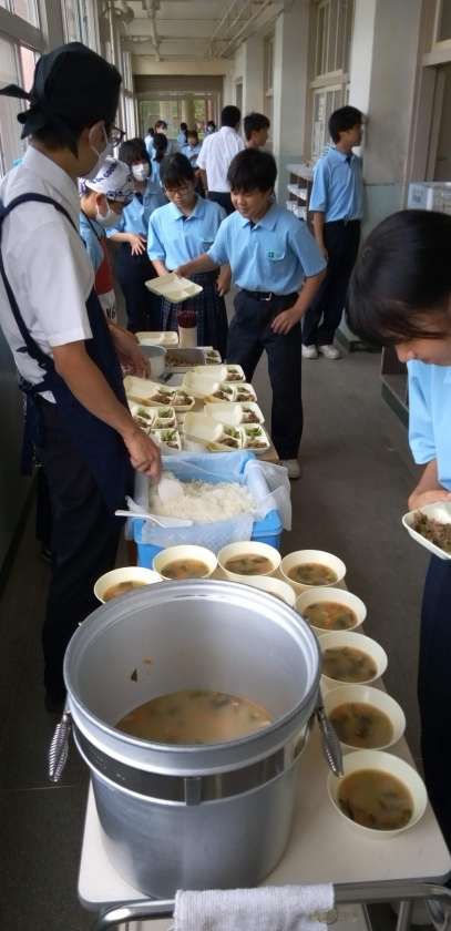 午前中の授業が終わって、給食の準備に入りました。