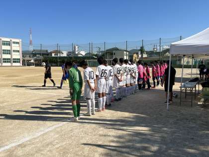 本日、1.2年生が主体の大阪府秋季大会、中地区予選が行われました。前半、なかなか思い通りのサッカーが出来ない中でも、なんとかリードして後半へ!緊張も和らぎ、後半は自分たちのサッカーで得点を積み重ねることが出来ました。これでブロックトーナメントの決勝に進むことが出来ました。18日、勝つことができれば大阪府大会(中央大会)に出場できます。チーム全員で頑張ります!