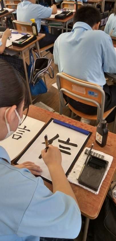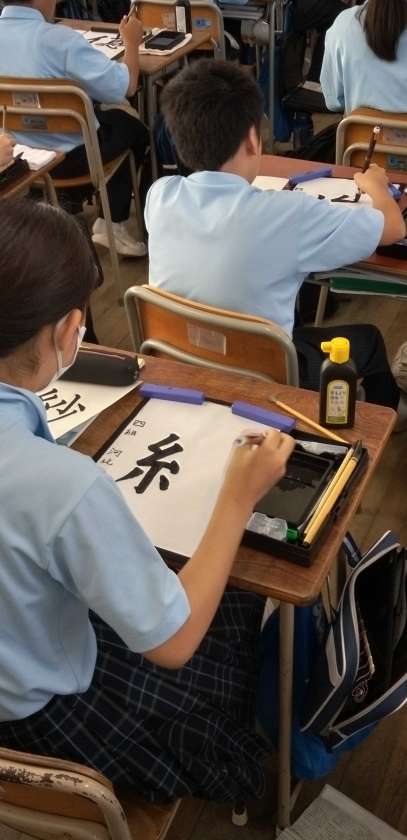 心を落ち着かせ、背筋をのばし、姿勢よく筆をすすめます。