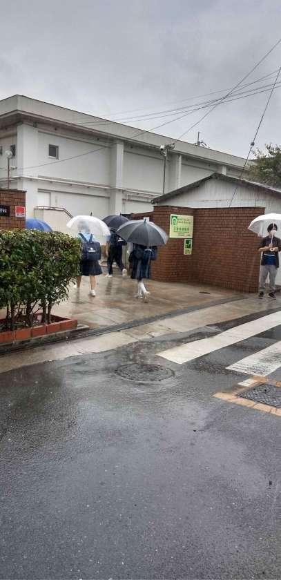 登校時間に、激しい雨!
