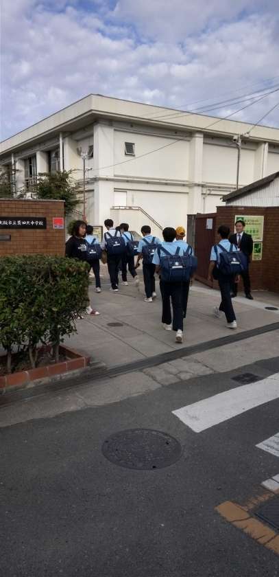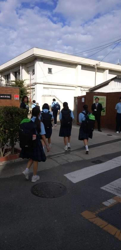 爽やかな秋の朝、生徒たちが元気に登校して来ました。