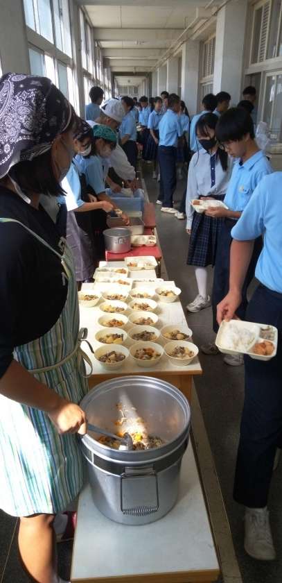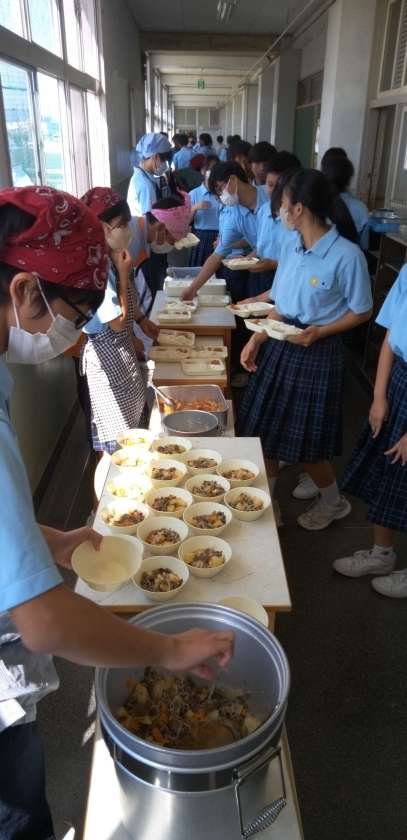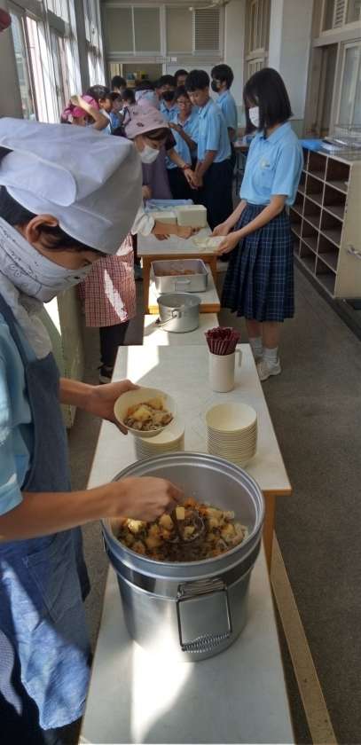 午前中の授業が終わって、給食の準備に入りました。