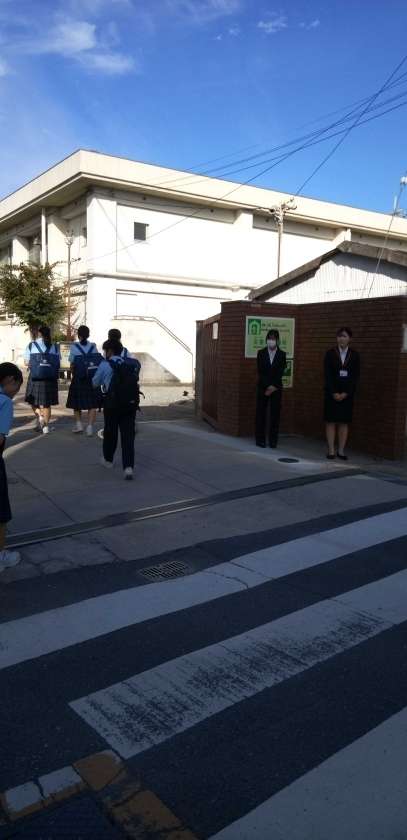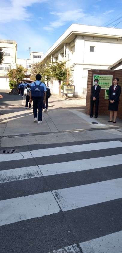 爽やかな空気の中、生徒たちが元気に登校して来ました。