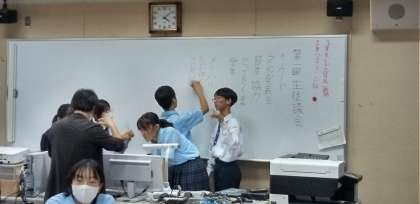 学校目標を作るため、みんなでキーワードを出し合い、考案しています!