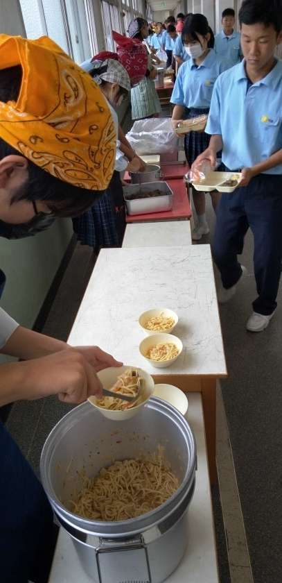 本日のメニューは、「牛肉の香味焼き」「ホタテ貝とトマトのスープスパゲッティー」「白菜のピクルス」です!