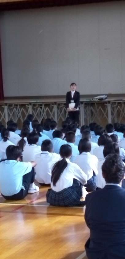 風紀チェックのあと、実習生のあいさつ、防寒着についてお話がありました。