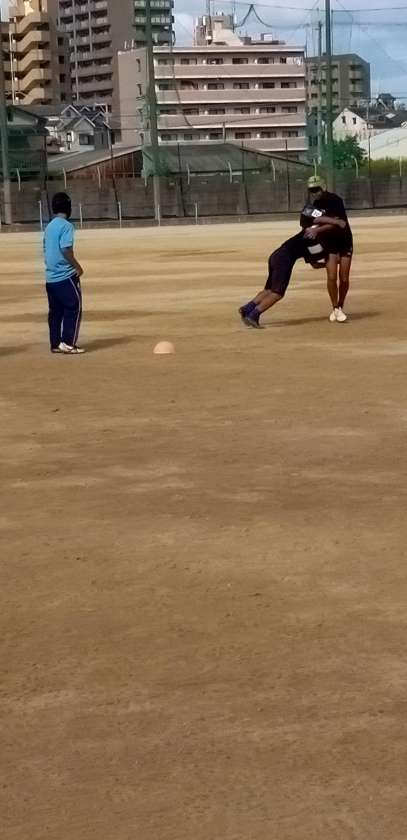 タックル練習! 激しい体当たりです。