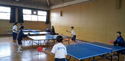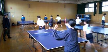 格技室では、卓球部が汗を流しています。
