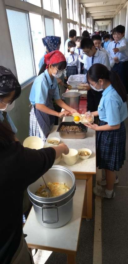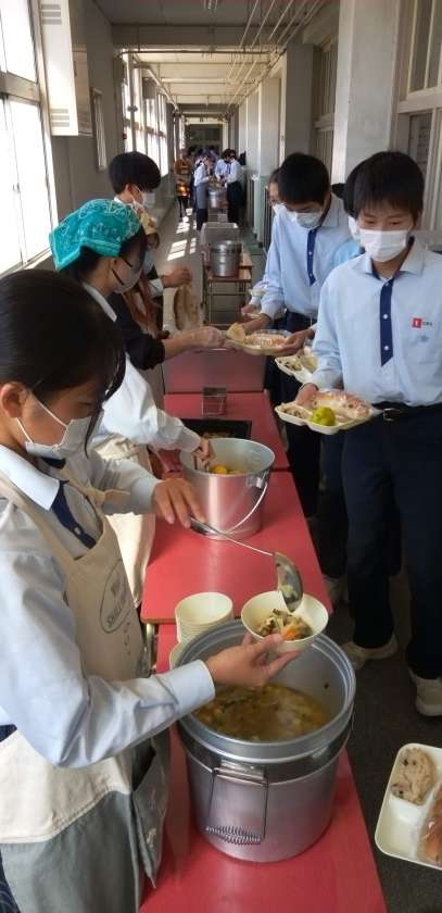 本日のメニューは、「金時豆の中華おこわ」「野菜たっぷり中華スープ」「みかん」です!