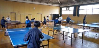 格技室では、卓球部が汗を流しています。