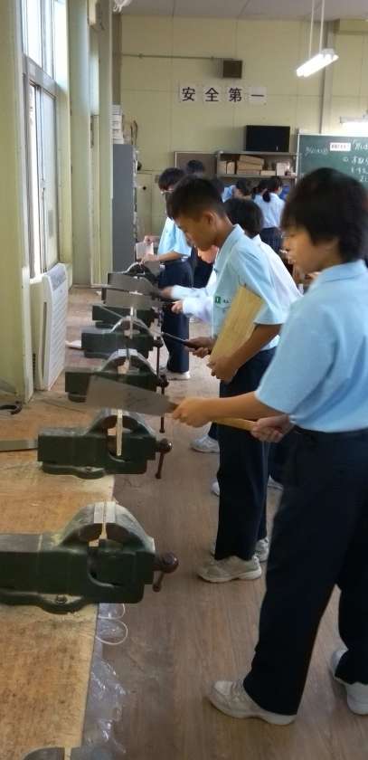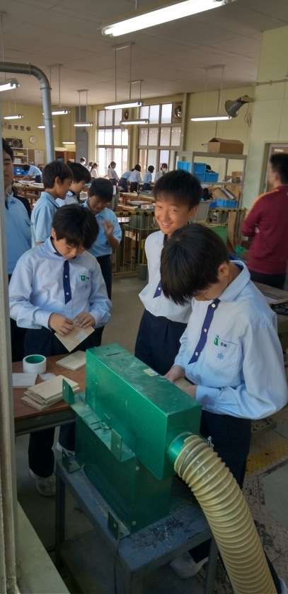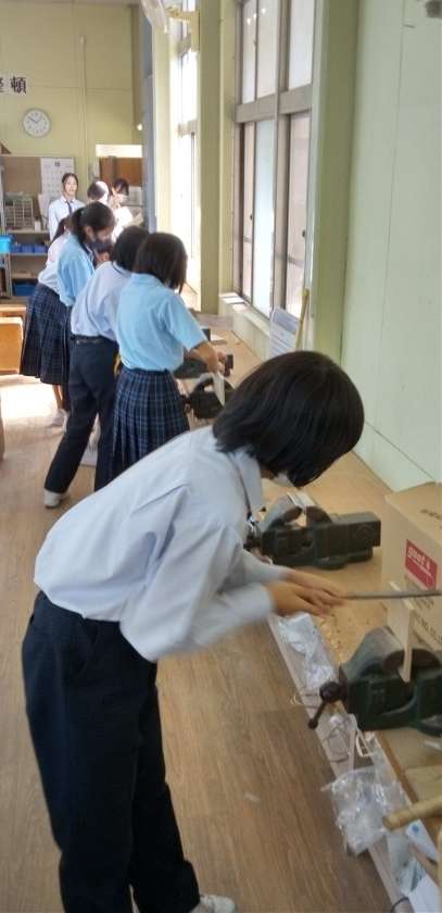 のこぎりや、ヤスリを使い、作品の完成を目指します。